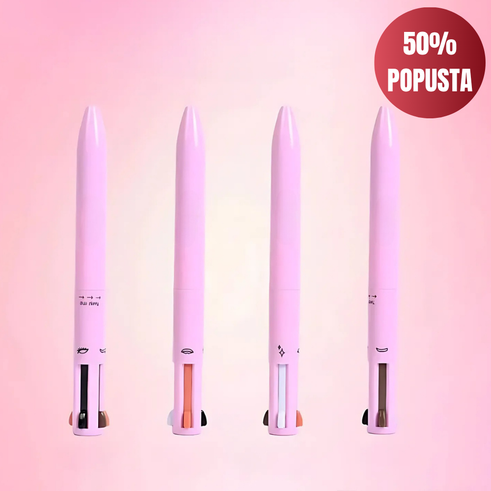 Zaboravi na pretrpane nesesere i stalno traženje olovki po torbi. Ova 4-u-1 makeup olovka sadrži sve što ti treba za brz i efektan look — u jednom potezu. Bilo da popravljaš šminku na poslu, u kolima ili pred izlazak, uvijek je pri ruci i uvijek spremna.